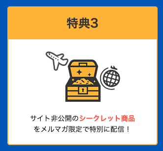 - メールマガジン登録: セール情報やお得なツアー情報がいち早く届きます。