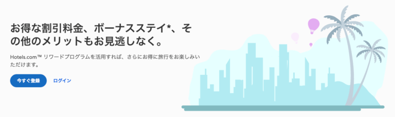 ※より詳しい最新情報は、Hotels.com™ リワード公式ページをご確認ください。