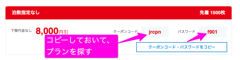 まず、新幹線を含むプランで利用する場合は、「JR+宿泊プラン」が対象に含まれているクーポンを選びます。