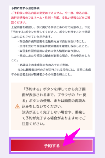 最後に、割引が正しく適用されているかを必ず確認してから、予約を完了させます。