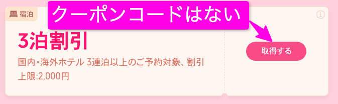 クーポンによっては、獲得型といって、クーポンコードがない場合もあります。