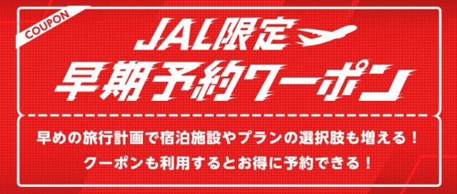 下記JAL便限定の早期予約クーポンは毎月配布されます。