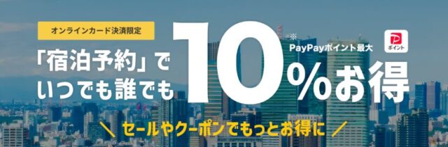 - お得な内容: 宿泊施設の提供でPayPayポイント10%