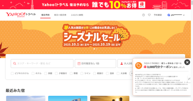 ヤフートラベルでは、セール以外にも割引クーポンを配布しています。