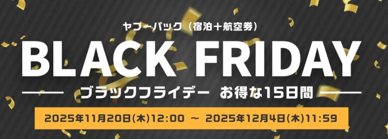 - 【航空券セット】ブラックフライデー対象プランを急いで確認(12/4終了)。