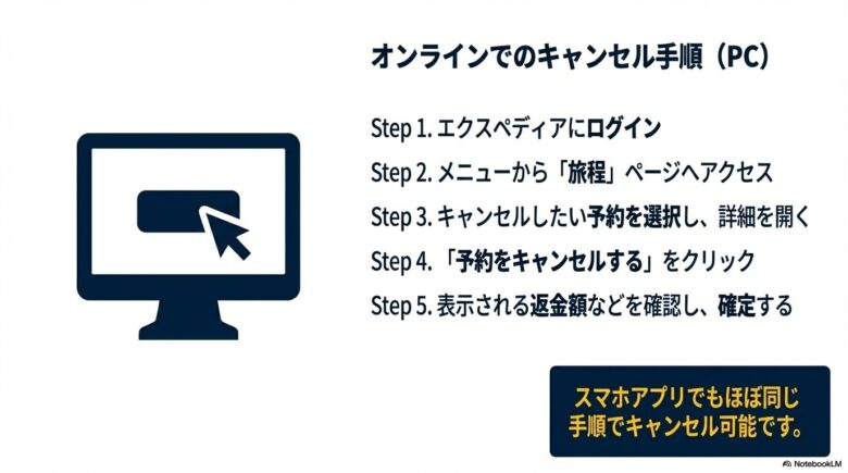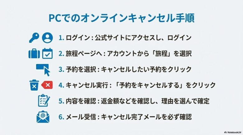 キャンセル無料期間内の予約であれば、オンラインで簡単にキャンセルできます。手順を詳しく解説します。